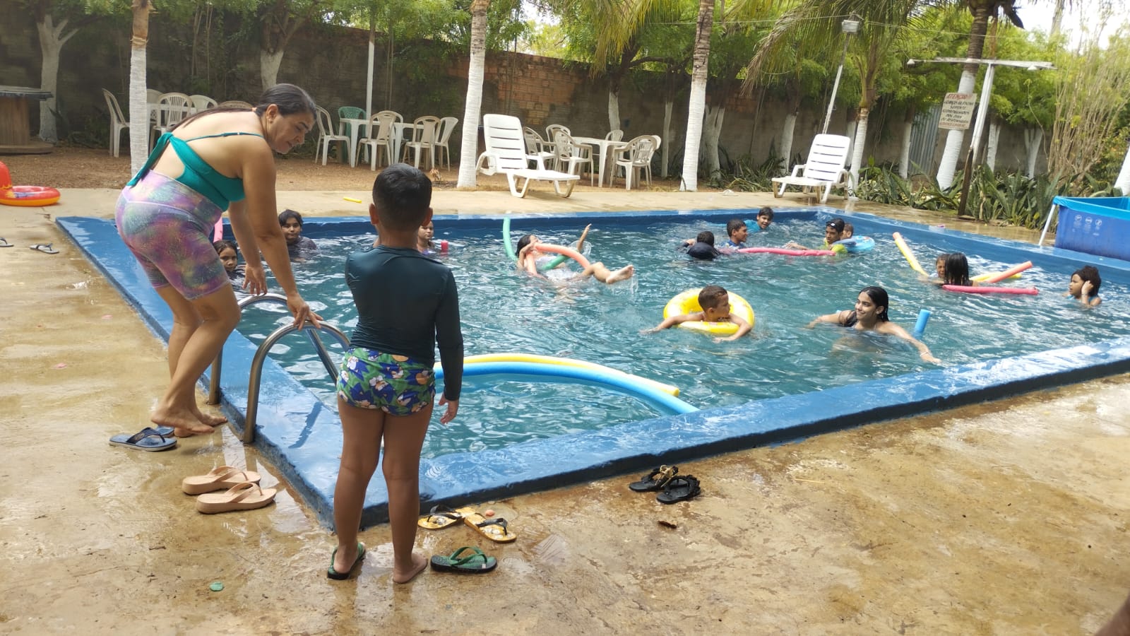 O grupo liderado pela Professora e Diretora, Belinha,  divertiram-se  bastante tomando banho de piscina e saboreando um grande churrasco.