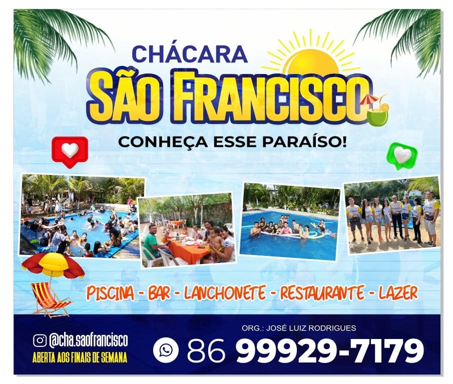 Programação da Chácara São Francisco durante esse período de férias e do tradicional festejo do co-Padroeiro em Esperantina