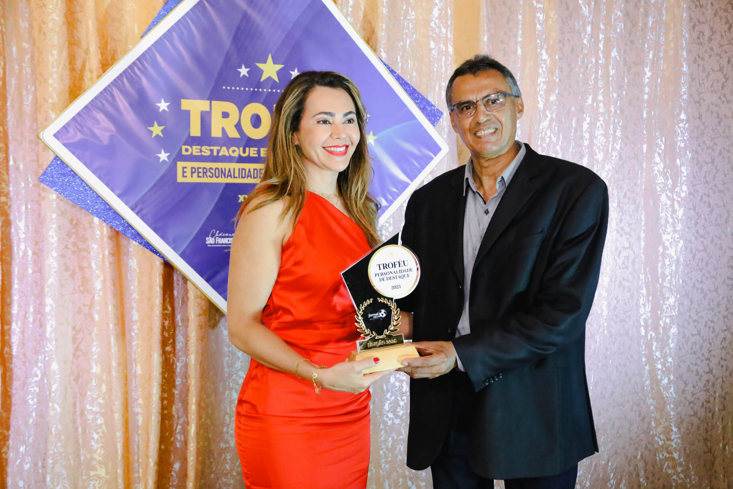Rosilene Lustosa, recebeu o seu lindo Troféu das mãos do Diretor do Jornalesp, o jornalista José Luiz Rodrigues, organizador da grande festa, que em 2025, completou exatamente dezessete anos de existência.