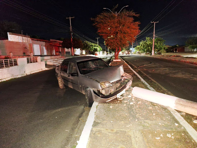 Com o impacto, o poste foi arrancado da base e ficou atravessado na pista, dificultando a circulação de veículos. O automóvel teve a parte frontal completamente destruída. No entanto, ao chegarem ao local, as autoridades não encontraram o condutor, que fugiu antes de prestar esclarecimentos.