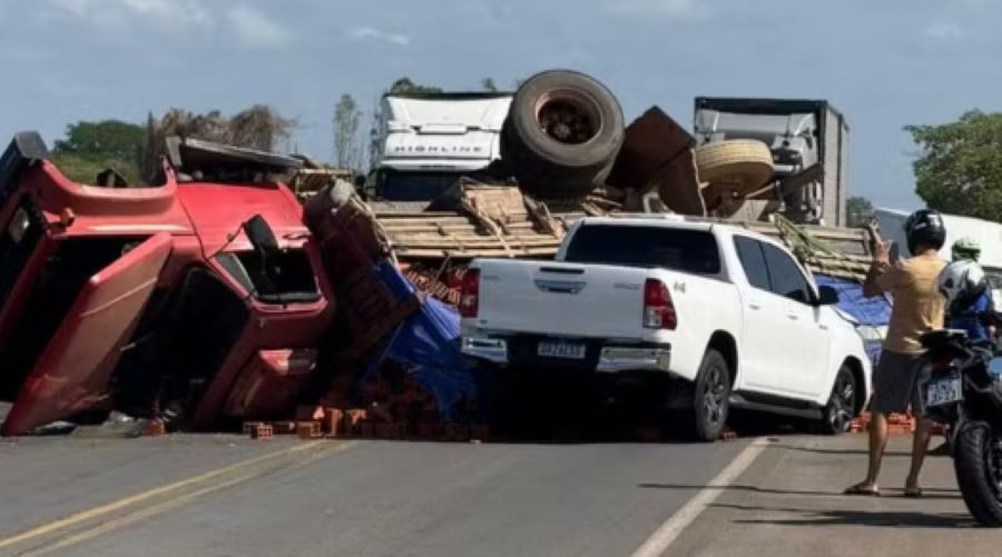 A reportagem apurou que a caminhonete foi atingida por um caminhão carregado com tijolos, após um segundo veículo fazer uma ultrapassagem indevida.