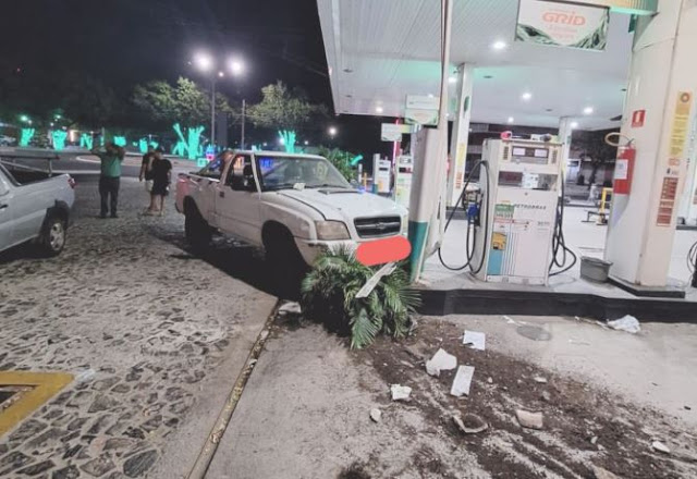 Um motorista, perdeu o controle de uma caminhonete e colidiu contra um posto de gasolina na madrugada do último sábado (13) em Parnaíba,