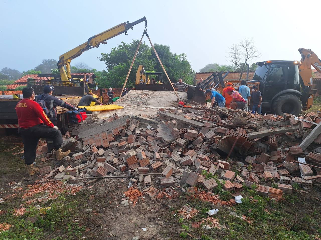 O comandante informou ainda que parte da estrutura do imóvel já foi removida com o auxílio do guindaste e que as buscas continuam.
