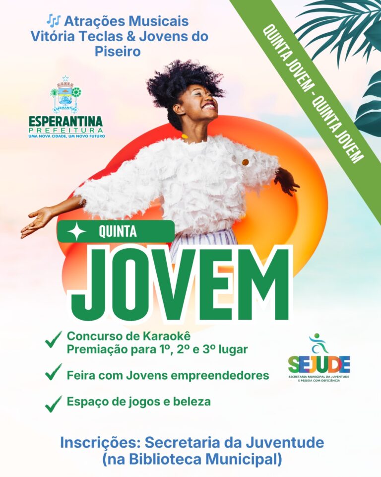 A Prefeitura de Esperantina, através da Secretaria da Juventude e da Pessoa com Deficiência, promoverá nesta quinta-feira (26) a primeira edição do evento Quinta Jovem.