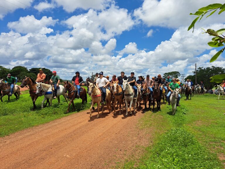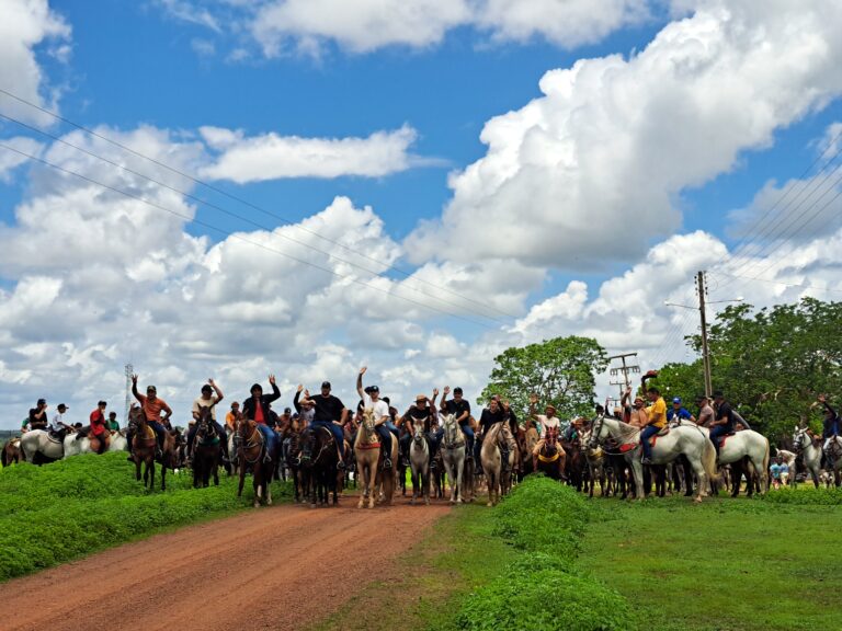 Logo depois, os participantes saíram em cavalgada pelas ruas da comunidade, reunindo vaqueiros montados e moradores que acompanharam o percurso. A programação também contou com música ao vivo com a banda Conexão e Paulinho Cantor.