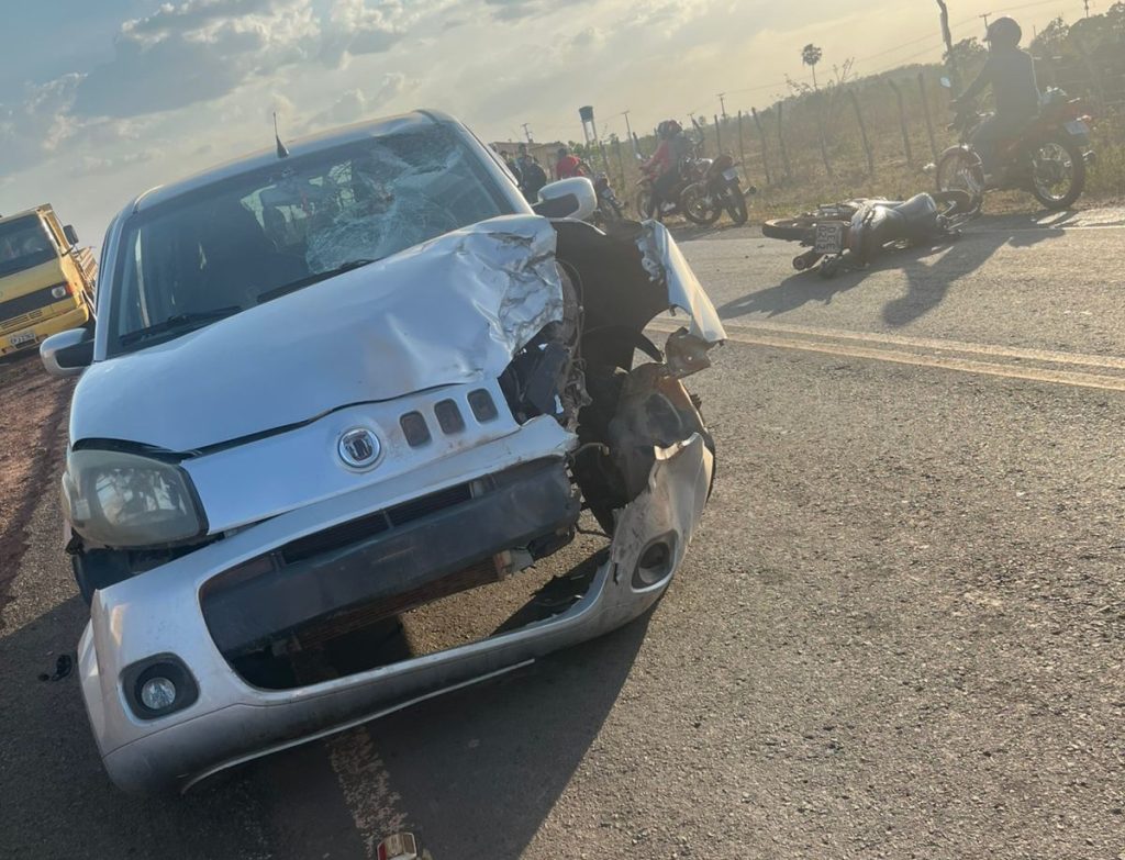 Uma grave colisão envolvendo um carro e uma motocicleta foi registrada na tarde desta sábado (11), na rodovia PI-214, nas proximidades do Posto Mateus, região do Alegre, em Luzilândia, Norte do Piauí.