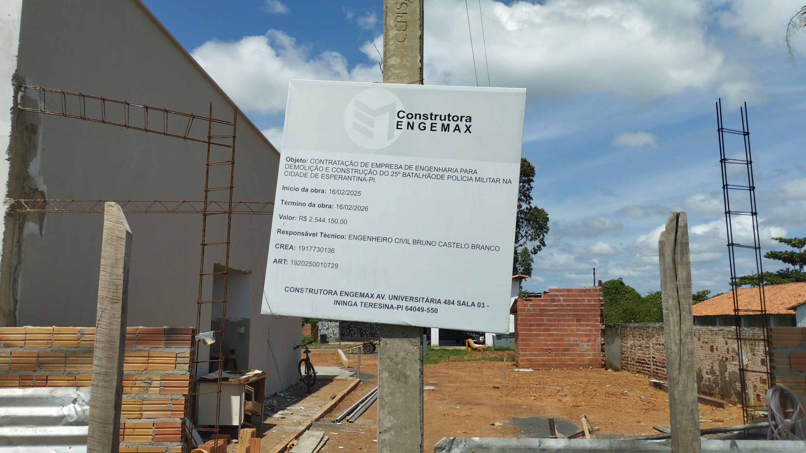 A construção do novo quartel faz parte de um plano de expansão e modernização da infraestrutura de segurança pública do Estado do Piauí.