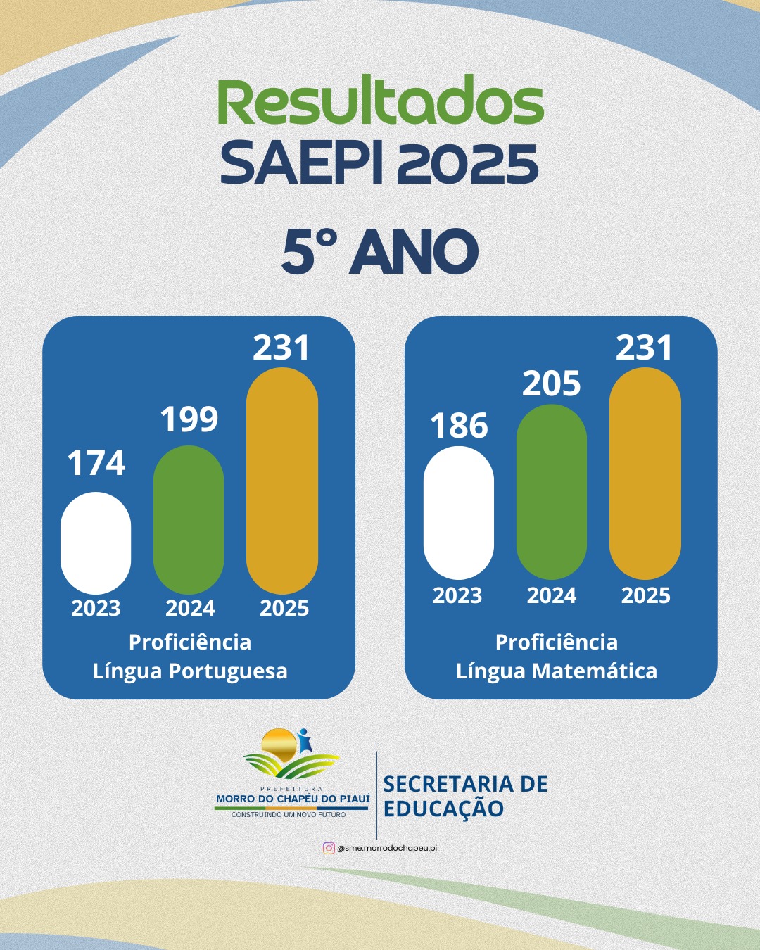 “Investir em educação é investir no futuro do nosso município. Temos trabalhado com planejamento, responsabilidade e foco na aprendizagem dos nossos alunos, e os resultados do SAEPI refletem esse esforço coletivo, rumo ao novo futuro”, afirmou.