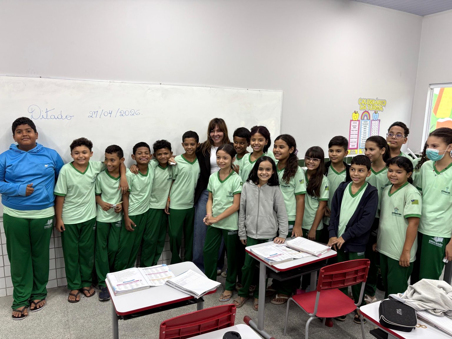 Durante a atividade, a prefeita percorreu as salas de aula, que contam com sistema de climatização, e manteve diálogo direto com o corpo docente e a equipe administrativa. O objetivo central da visita foi assegurar que o padrão de qualidade estabelecido na inauguração esteja sendo mantido e aprimorado no dia a dia escolar.