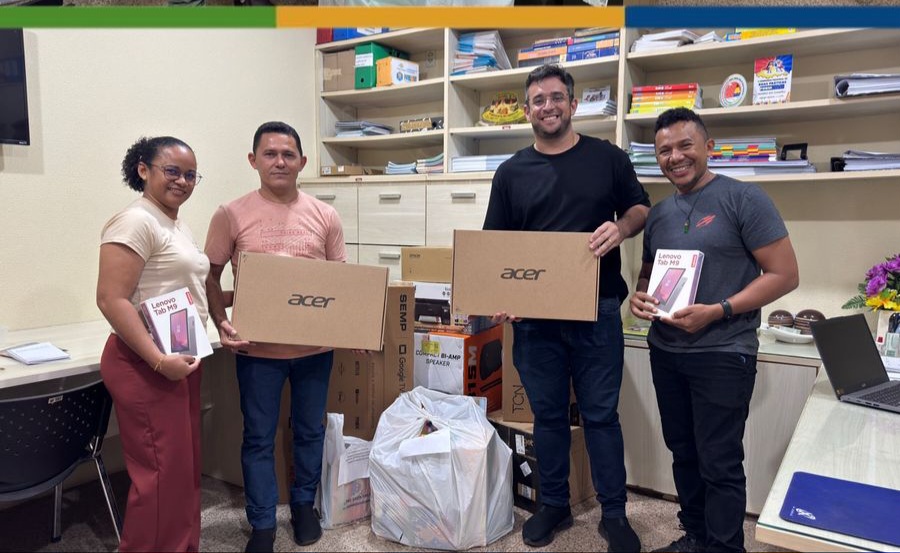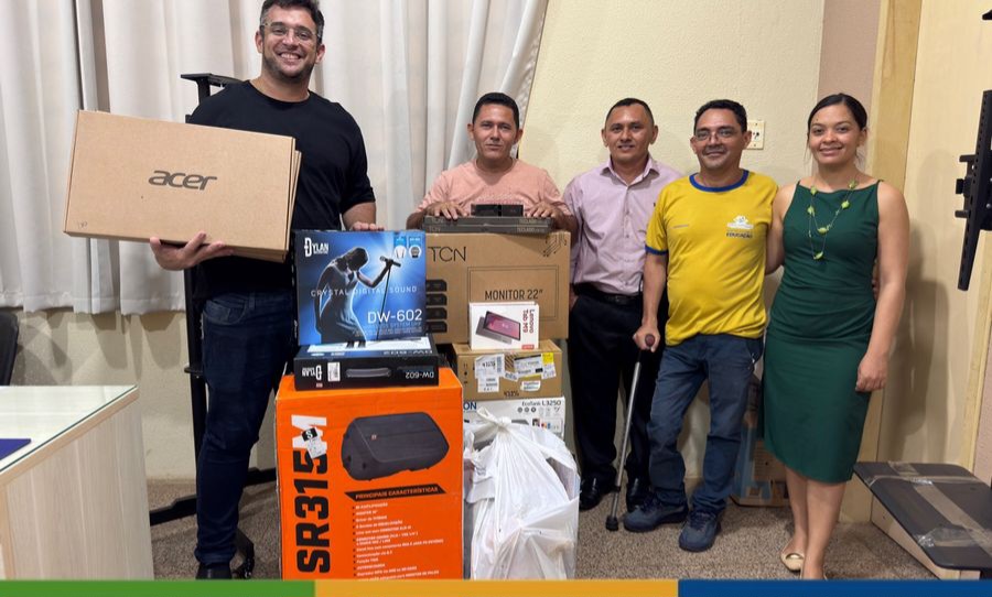 Foram entregues os seguintes equipamentos: notebooks, tablets, impressoras HP, suportes para TVs, caixas de som, além de materiais de custeio.