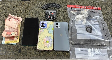 Com apoio de uma policial feminina da VTR Maria da Penha do 2º BPM, foi realizada busca pessoal em Antônia, sendo encontrada uma porção de substância análoga à cocaína, além de R$ 340 em espécie. Também foram apreendidos dois aparelhos celulares e o veículo I/FIAT Siena ELX Flex, placa NIN-8893. O imóvel citado nas denúncias, localizado na quadra 41, casa 15, já havia sido alvo de outra ação policial no último dia 23 de fevereiro, quando houve apreensão de arma de fogo, drogas e dinheiro. Diante dos fatos, os suspeitos receberam voz de prisão e foram encaminhados à Central de Flagrantes para os procedimentos legais cabíveis.