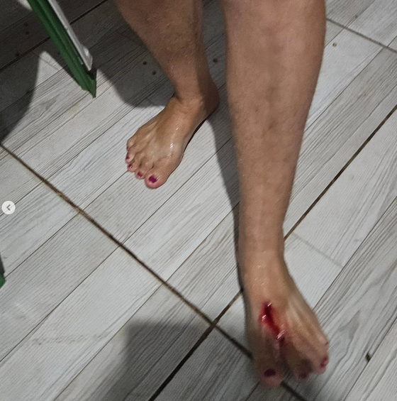 O fato é que a senhora madrasta do suspeito acabou se ferindo na região do pé.