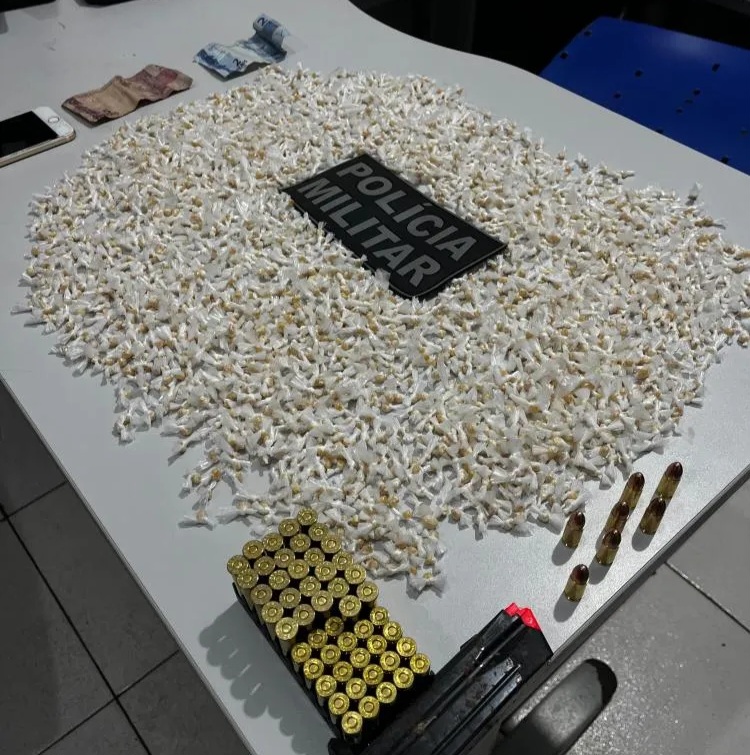 A abordagem aconteceu em um ônibus da Viação 07, que chegou ao município ao meio-dia. Durante a fiscalização no interior do veículo, os policiais identificaram uma mulher dormindo no fundo do ônibus. Ao revistarem seus pertences, foram encontrados 2.368 pedras de crack, além de 30 munições de calibre 9mm e 22 munições de calibre .38.