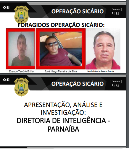 Segunda fase da operação Sicário II para cumprimento de 04 mandados de prisão e 05 de busca e apreensão. Até o momento 03 investigados estão foragidos.