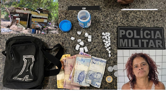 Ao ser abordada e questionada sobre o conteúdo da bolsa, a mulher confessou que transportava drogas. Na verificação, foram encontradas 21 pedrinhas de substância análoga a crack, 10 porções de substância análoga a maconha e aproximadamente R$ 60,00 em dinheiro trocado, caracterizando a posse intencional para o tráfico de drogas.