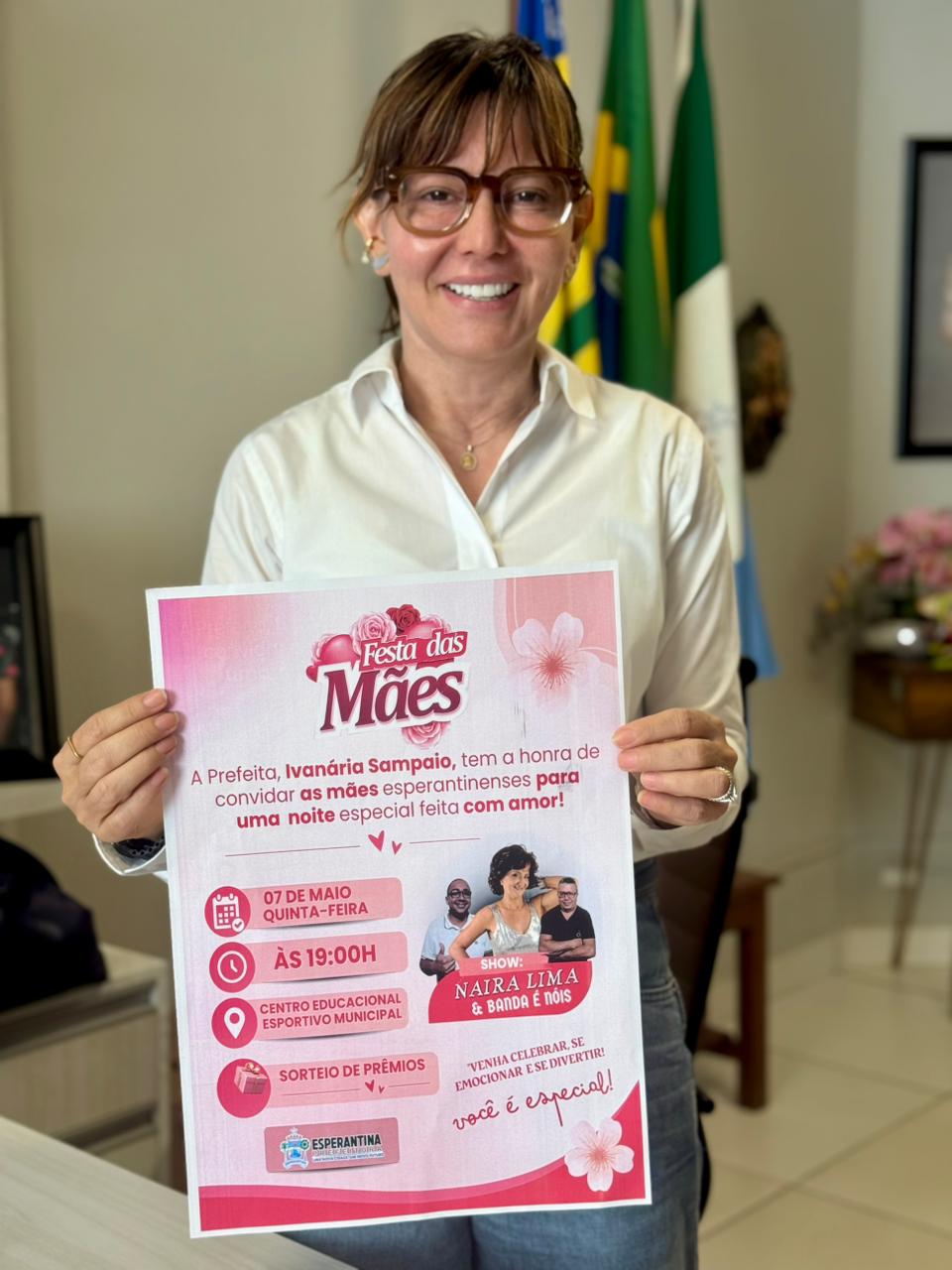 A Prefeitura de Esperantina, sob a gestão da prefeita Ivanária Sampaio, promoverá  na próxima quinta-feira (07/05), uma celebração especial em homenagem ao Dia das Mães.