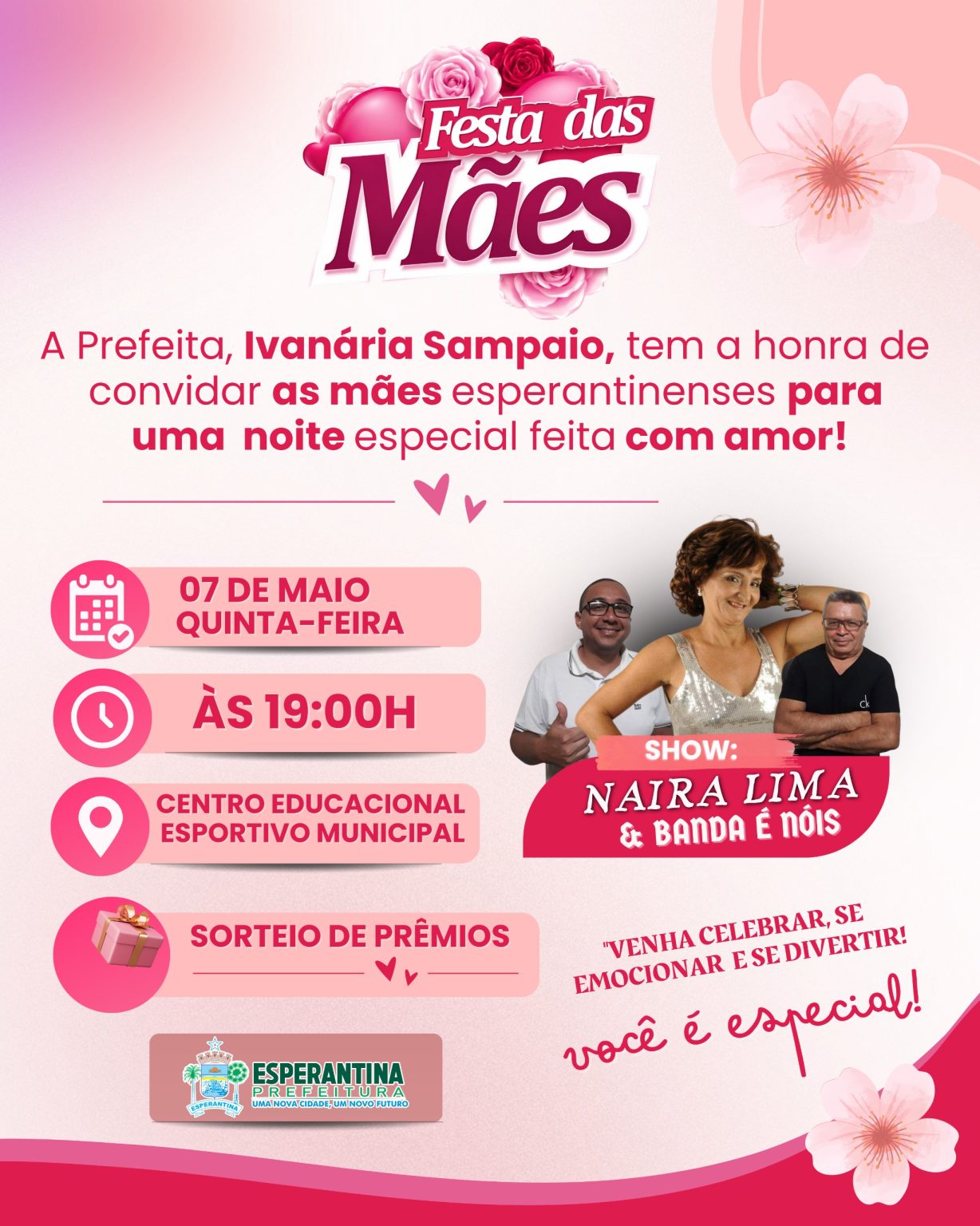 O evento, que acontecerá no Centro Educacional Esportivo Municipal, tem como objetivo homenagear as Mães esperantinenses com uma noite de lazer, música e integração social.