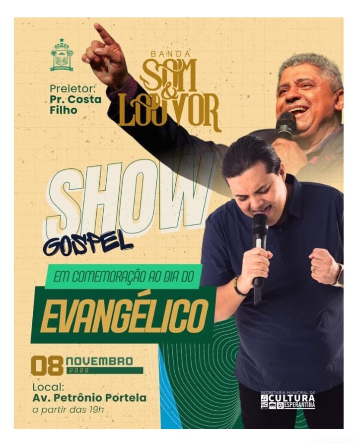 A Prefeitura  de Esperantina, através da Secretaria Municipal de Cultura, em parceria com a Aliança de Pastores, convida toda a população esperantinense para celebrar  o Dia do Evangélico.
