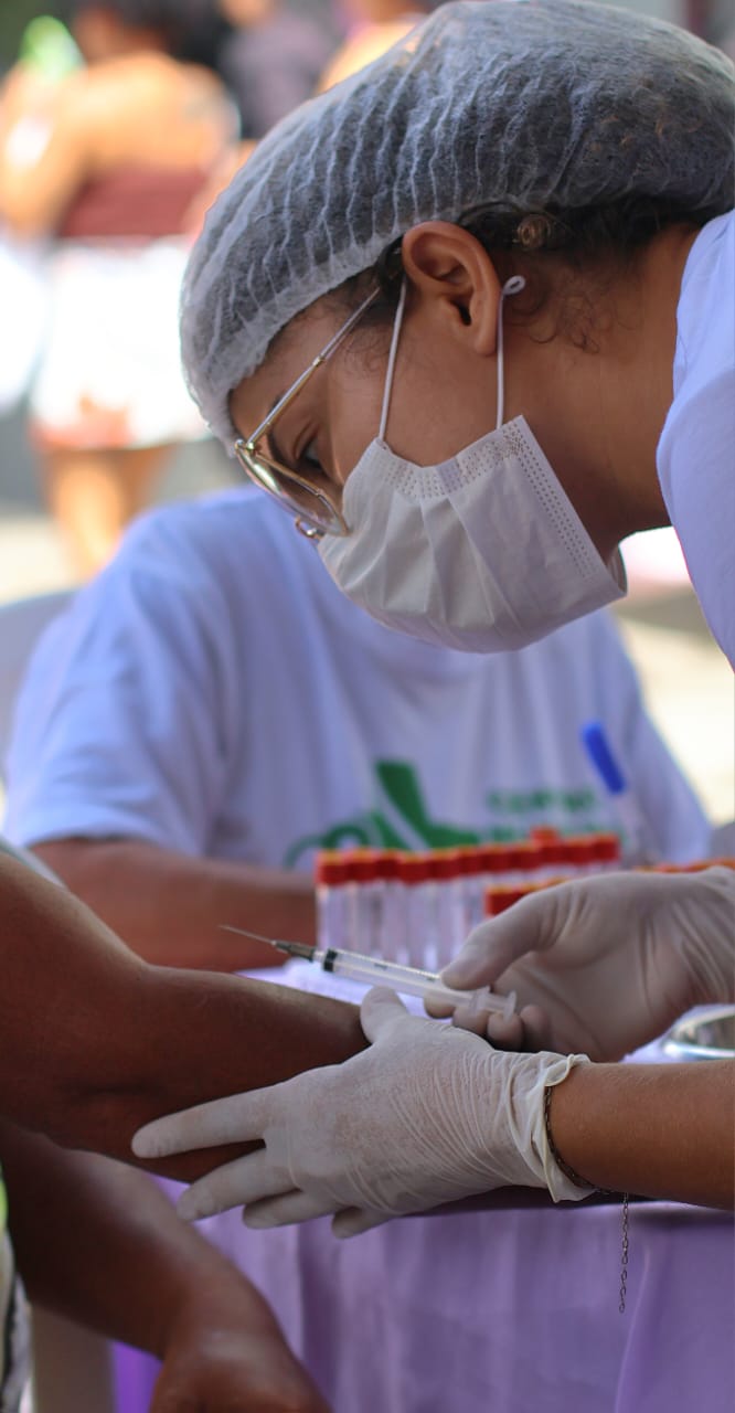 Triagem e Exames: Coletas de sangue, aferição de pressão arterial e testes de glicemia;