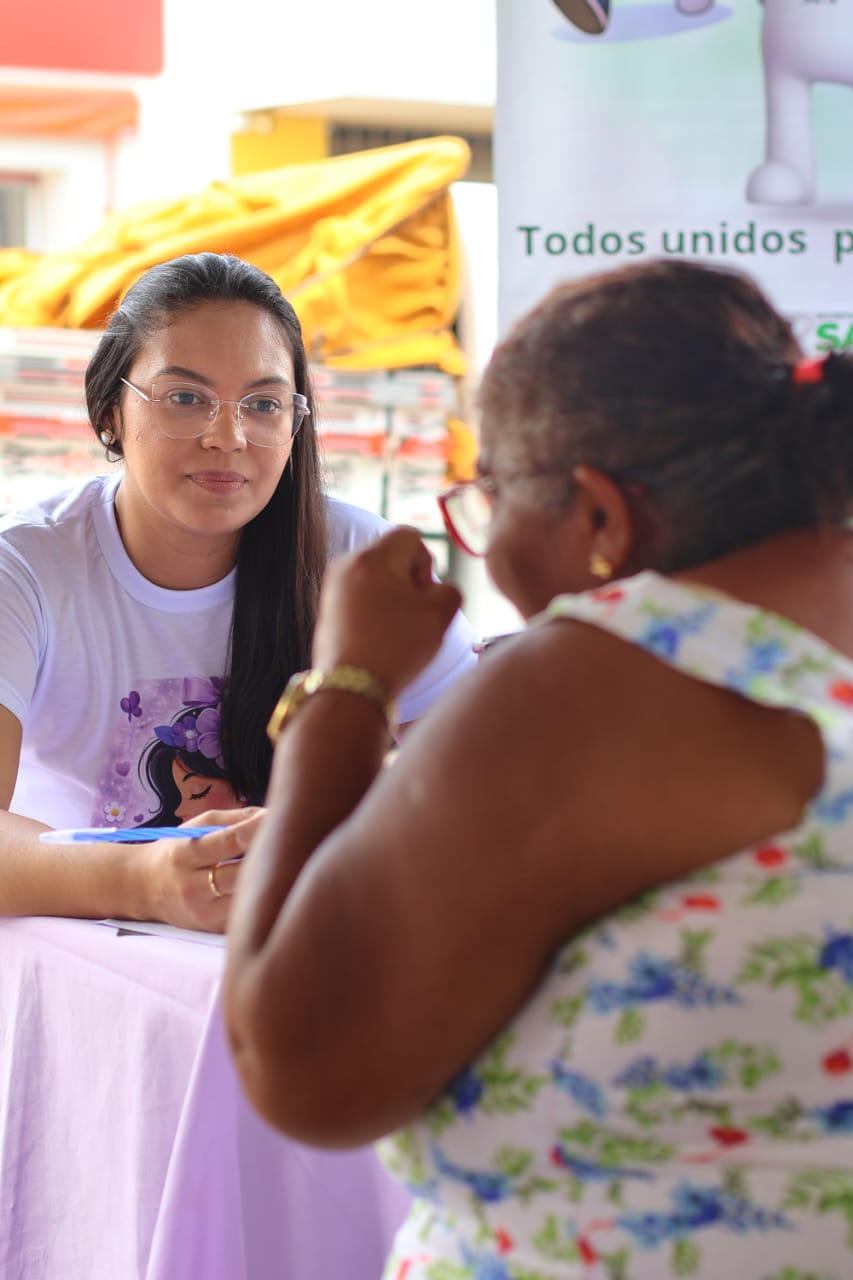 Com o mote “Cuidar de você é prioridade”, a ação foi concentrada no Mercado Público, ponto estratégico para alcançar as mulheres da comunidade e as feirantes locais.
