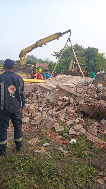 Equipes do Serviço de Atendimento Móvel de Urgência (Samu), do Corpo de Bombeiros e do Grupo de Resgate Voluntário (GAV), além de guarnições da Polícia Militar e outros voluntários, foram acionadas e seguem atuando no local. Um guindaste e uma retroescavadeira estão sendo utilizados na retirada dos escombros.