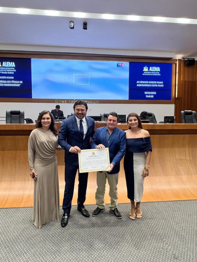 Empresário Vicente Paulo Recebe Título de Cidadão Maranhense na Assembleia Legislativa