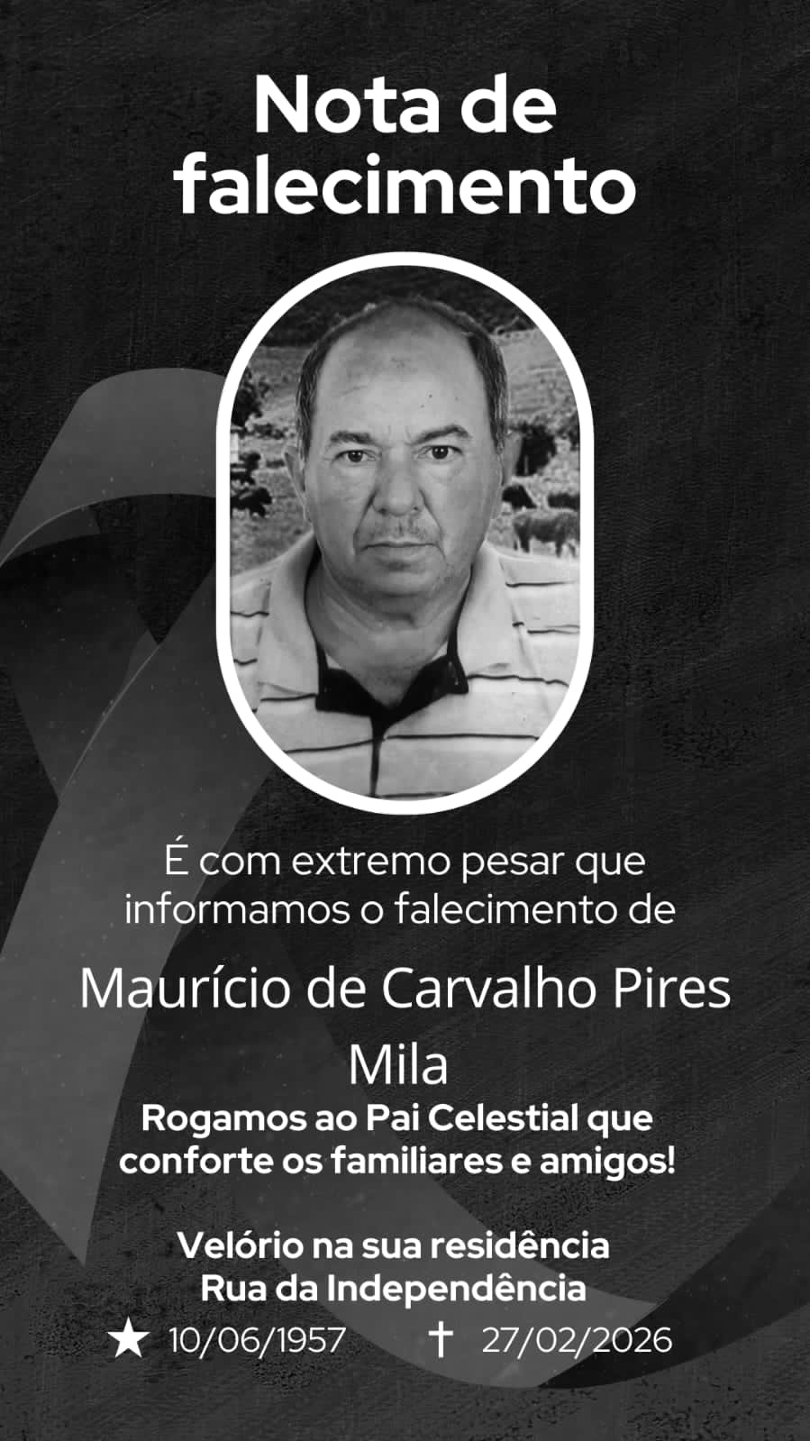É com profundo pesar que noticiamos, o falecimento do ex-magarefe esperantinense, Mauricio de Carvalho Pires, conhecido popularmente como, Mila de 69 anos de idade.